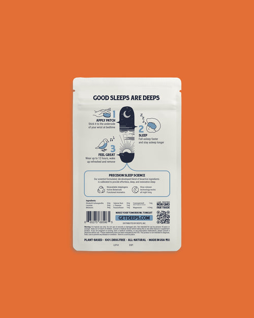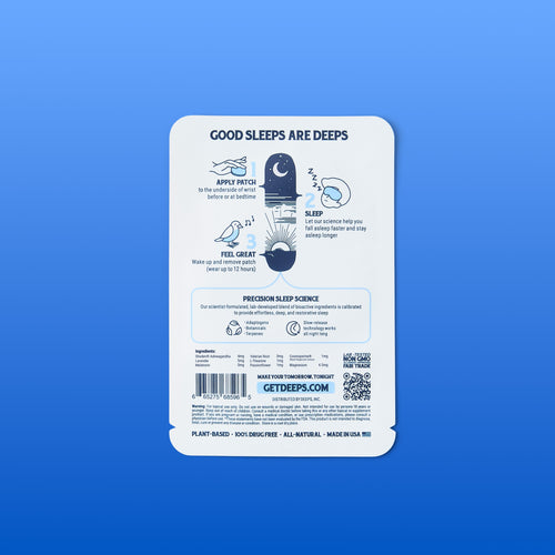 If you struggle with sleep disruptions, the Stay Asleep Patch is designed to help you maintain a consistent, restful sleep throughout the night with the help of star ingredients like magnesium, melatonin, and Shoden® ashwagandha.
